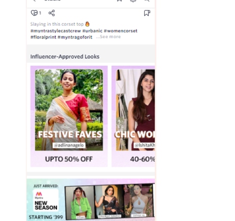 Recently, Myntra has introduced live shopping features like Myntra Studio, in which celebrities and influencers promote their products, and the users get personalized feeds to shop. Myntra Studio provides exclusive content to its users to inspire them to shop or create a wish list to shop later on. You can see the below-attached screenshot of Myntra Studio. The influencers are sharing the looks that the users can purchase if they like.